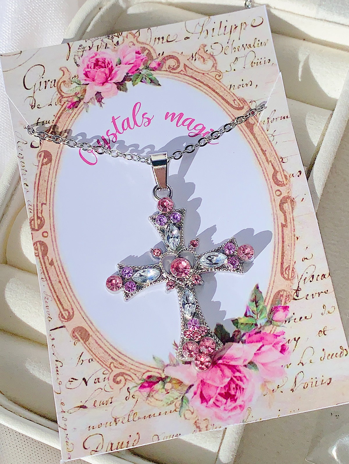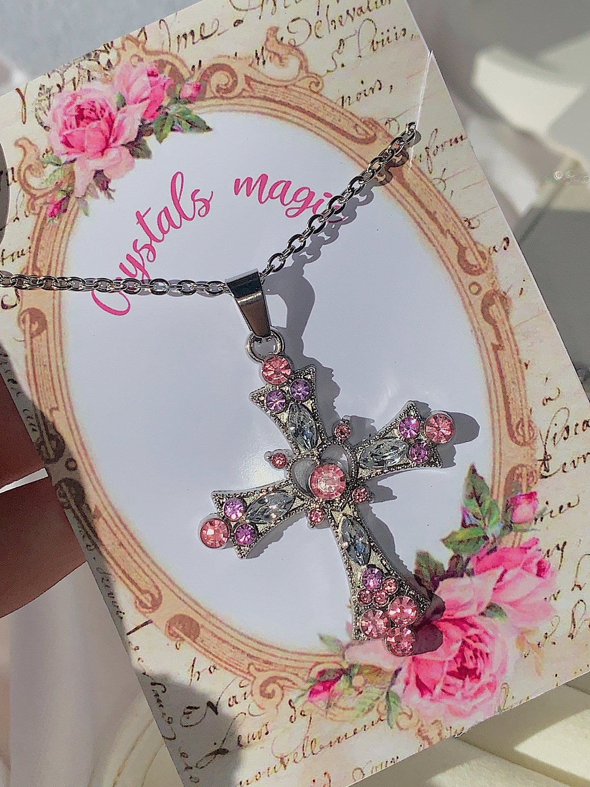 Collar cruz silver - pink