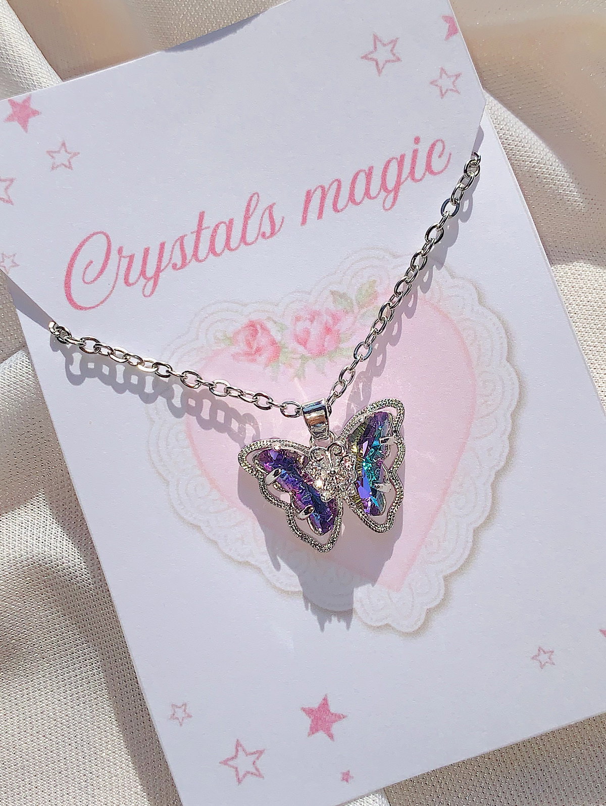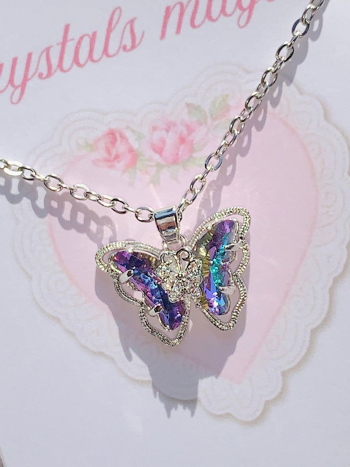 Collar mariposa violeta tornasol