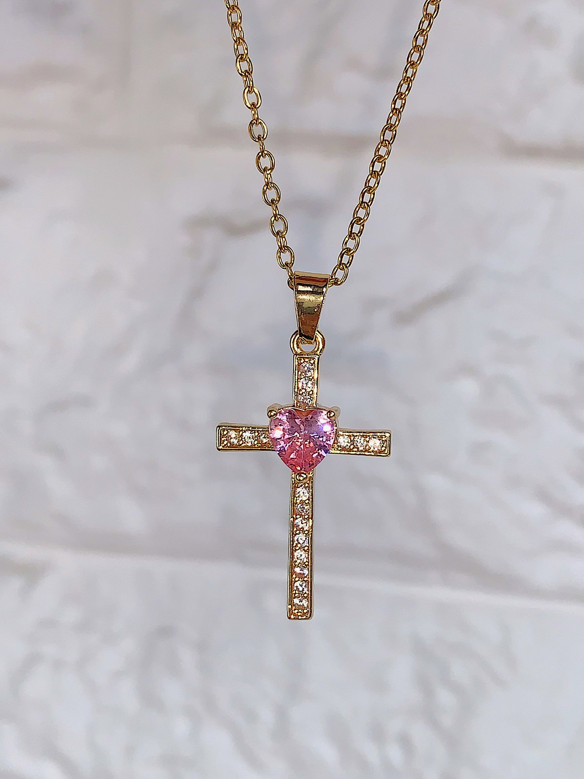 Collar cruz golden - rosa
