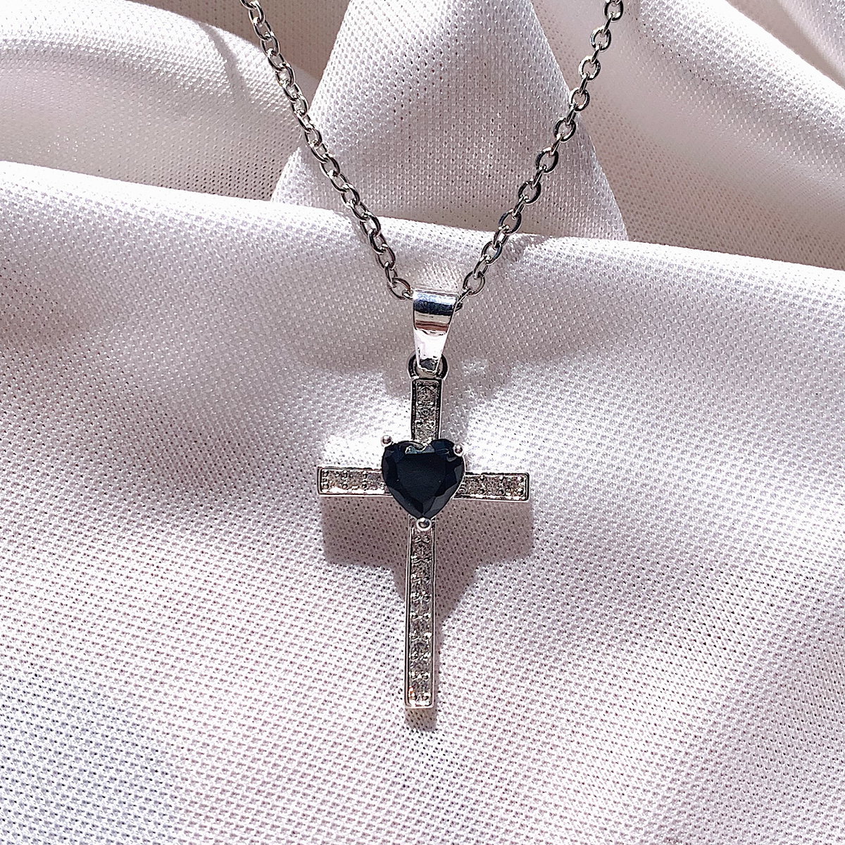 Collar cruz silver - negro